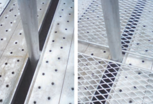 ● メッシュばんのレンタルは3機種あり、隙間の広さに応じて足場の設置が可能
